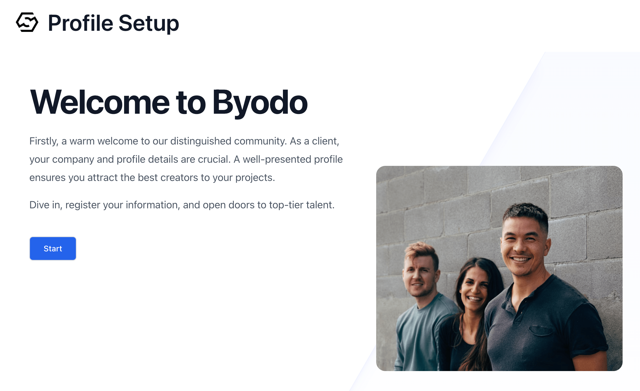 Startand proceeds to the next step, which begins the creation of the profile. - The project owner initially registers only an
