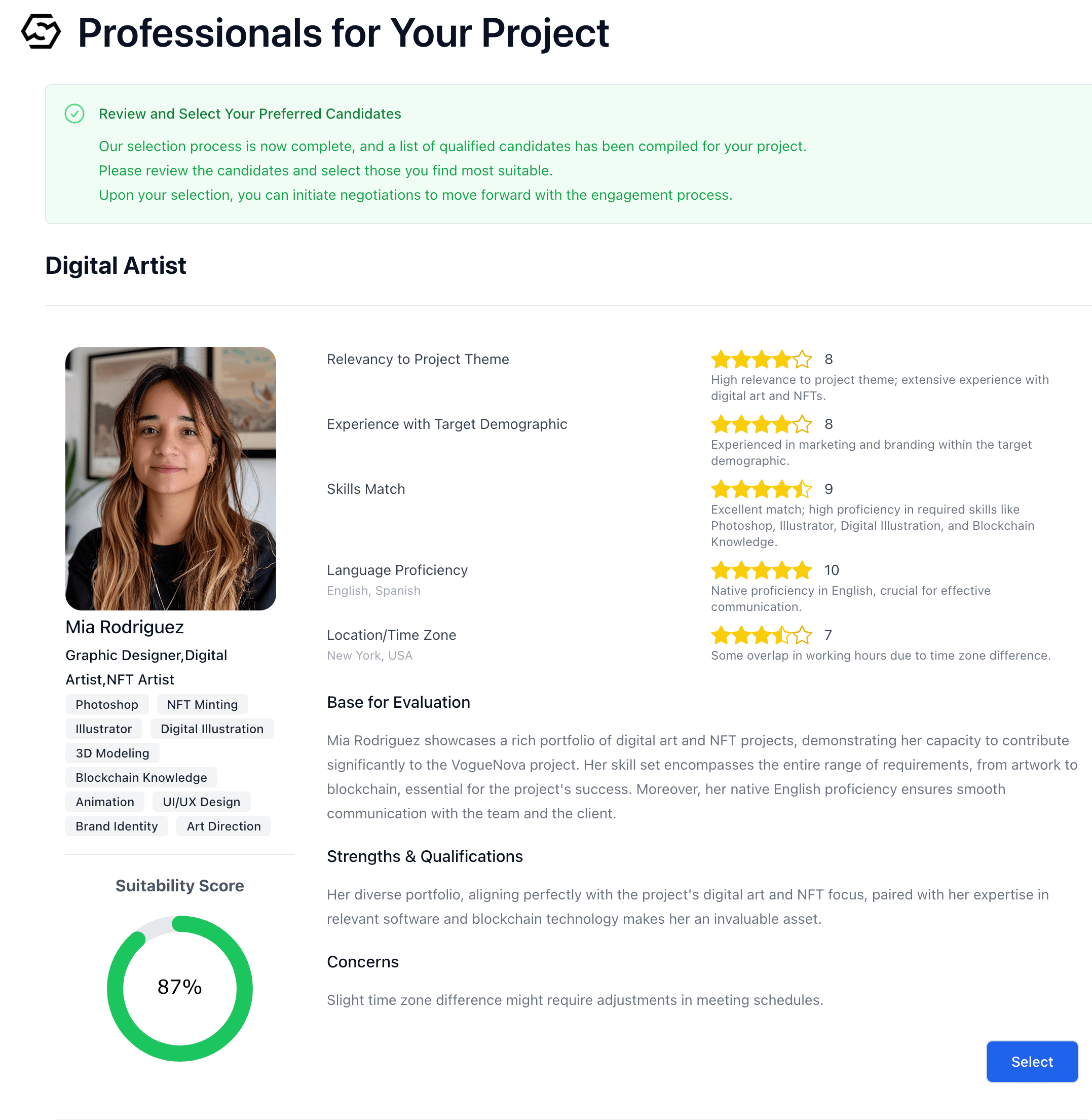 - Once Alex has selected all of the suitable candidates for the project from