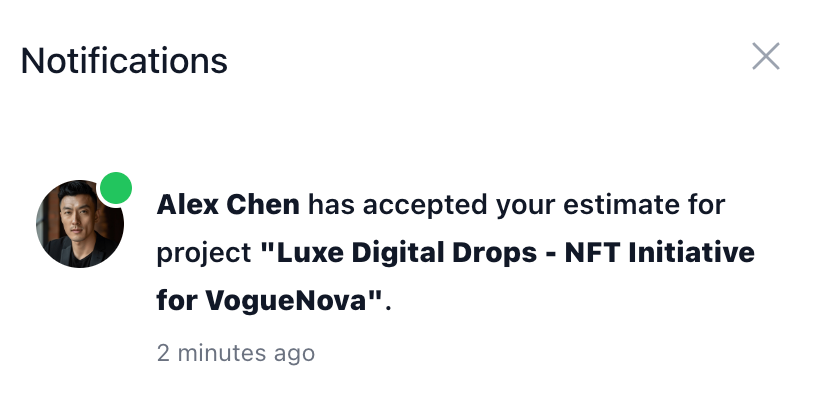 - When Alex accepts the estimate, Mia is notified.
